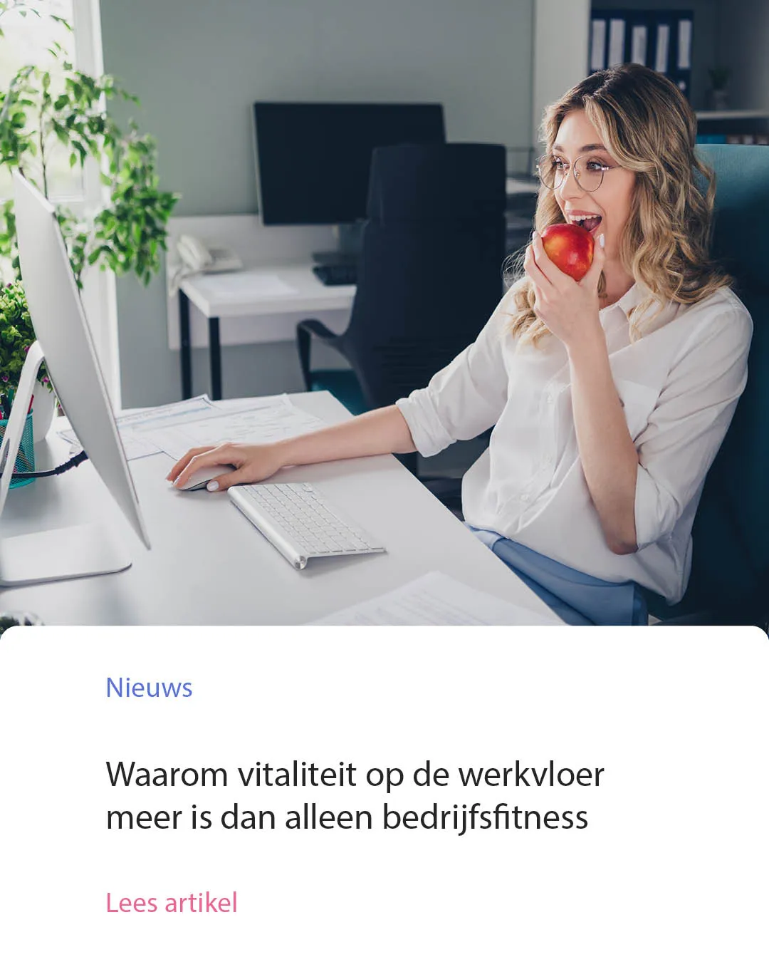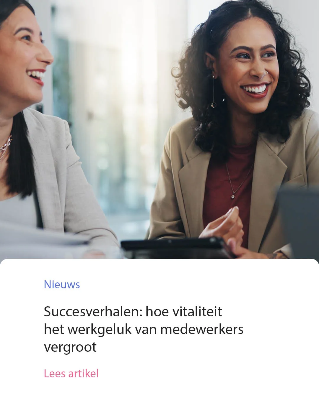 Met gepersonaliseerde begeleiding, kleine gewoontes en een toegankelijk platform maken we vitaliteit haalbaar, meetbaar en blijvend. Zo werken we samen aan de meest vitale medewerkers ter wereld.