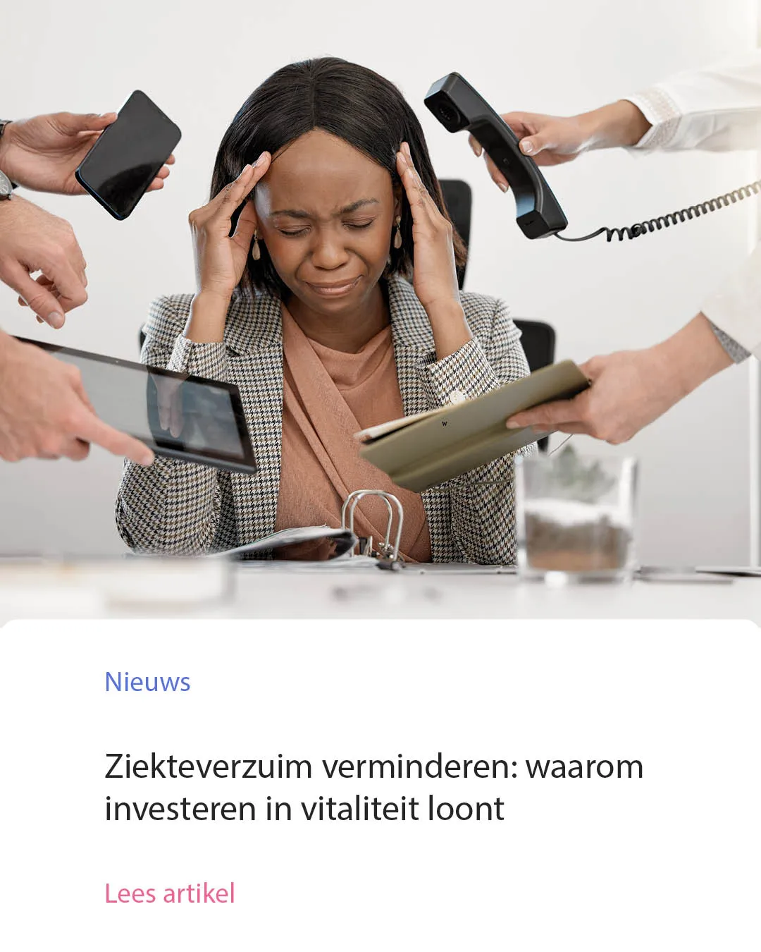 Investeren in vitaliteit levert vele voordelen op voor werkgevers en werknemers. Medewerkers krijgen meer binding met de organisatie, het ziekteverzuim daalt, de productiviteit wordt verhoogd, medewerkers krijgen meer plezier in hun werk en ervaren minder stress.